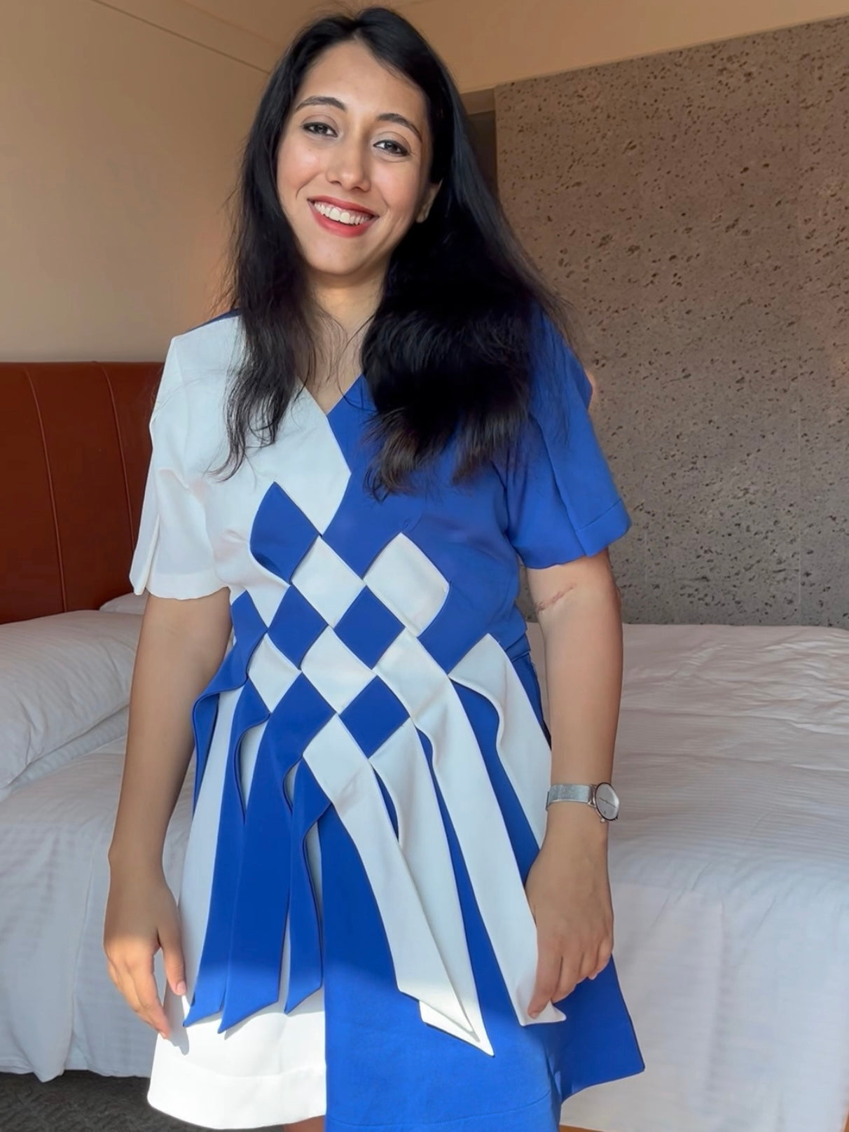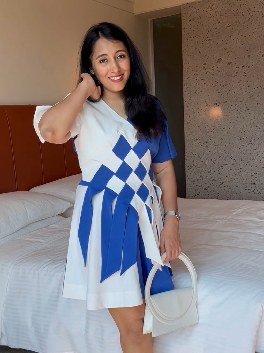 A striking blend of symmetry and motion, the Blue White Skirt Top Set features a bold diamond-checkered pattern that moves with you. The pleated skirt flows with ease while the top adds sharp contrast with clean lines and structure — a head-turner for contemporary wardrobes.